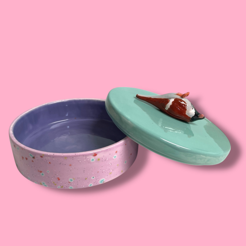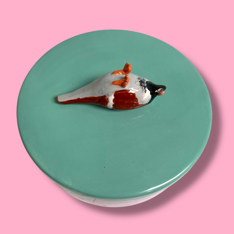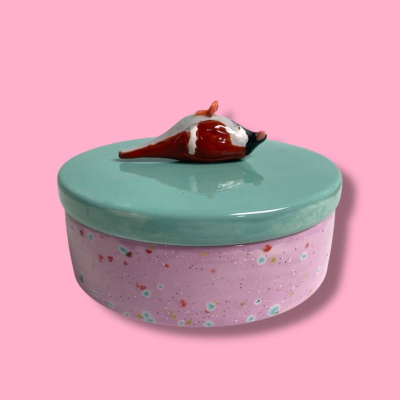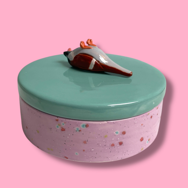 Deze unieke trommel is gemaakt van geglazuurd aardewerk en perfect voor het bewaren van jouw favoriete koekjes.