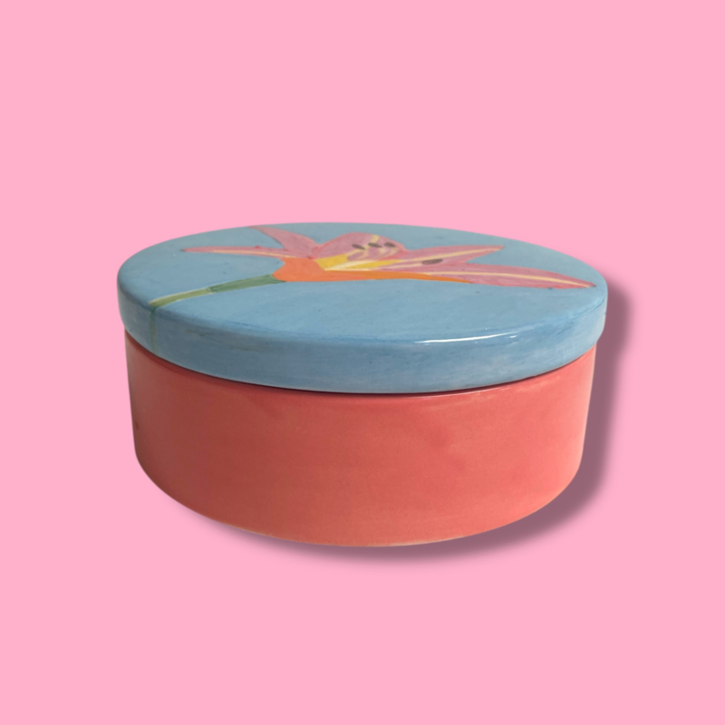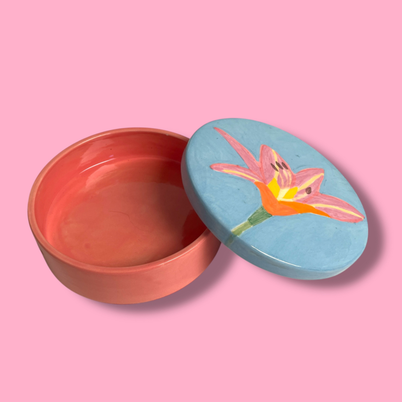 Deze unieke trommel is gemaakt van geglazuurd aardewerk en perfect voor het bewaren van jouw favoriete koekjes.