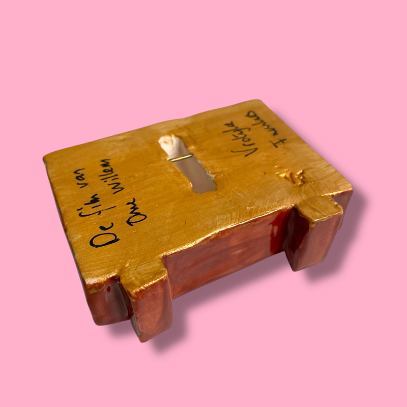Afmeting H: 7 cm B: 9,5 cm D: 2 cm.