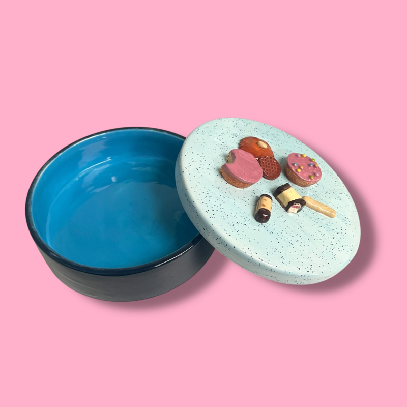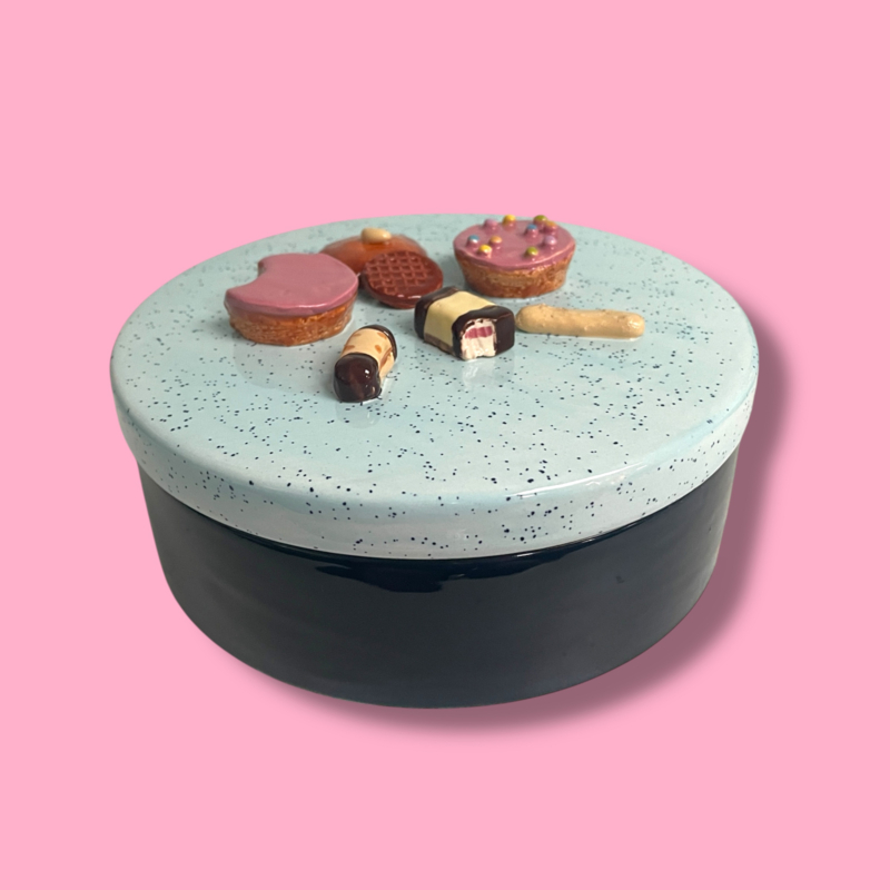 Deze unieke trommel is gemaakt van geglazuurd aardewerk en perfect voor het bewaren van jouw favoriete koekjes. De basis is zijglans geglazuurd, het deksel glans geglazuurd.