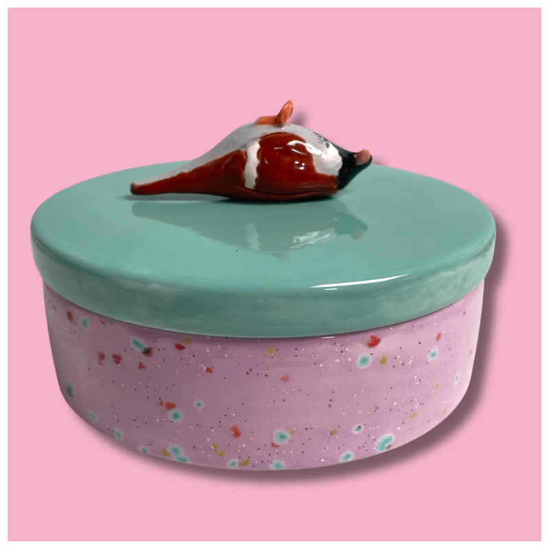 Is ie niet fantastisch? De koekjes koektrommel! Je hebt de keuze uit roze/confetti, lichtblauw/ confetti, glitter/confetti, paars, oranje/groen en blauwe stippen.