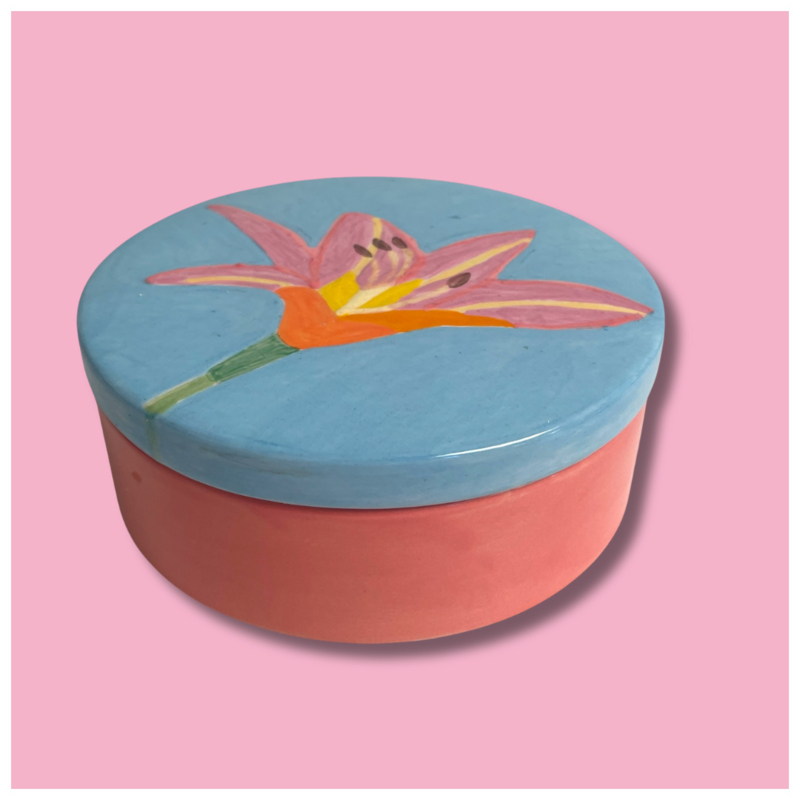 Deze unieke trommel is gemaakt van geglazuurd aardewerk en perfect voor het bewaren van jouw favoriete koekjes.